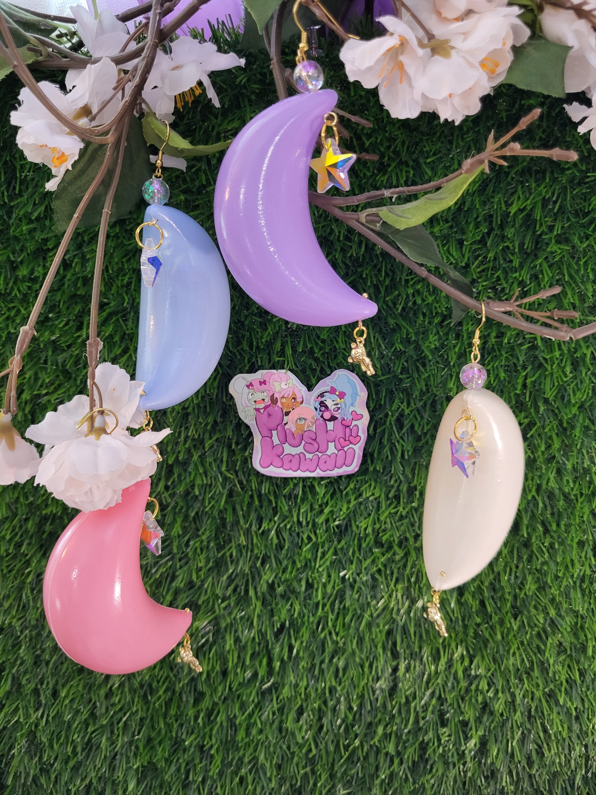 The moons come in 4 colors- Pink, Purple, Blue and Ivory