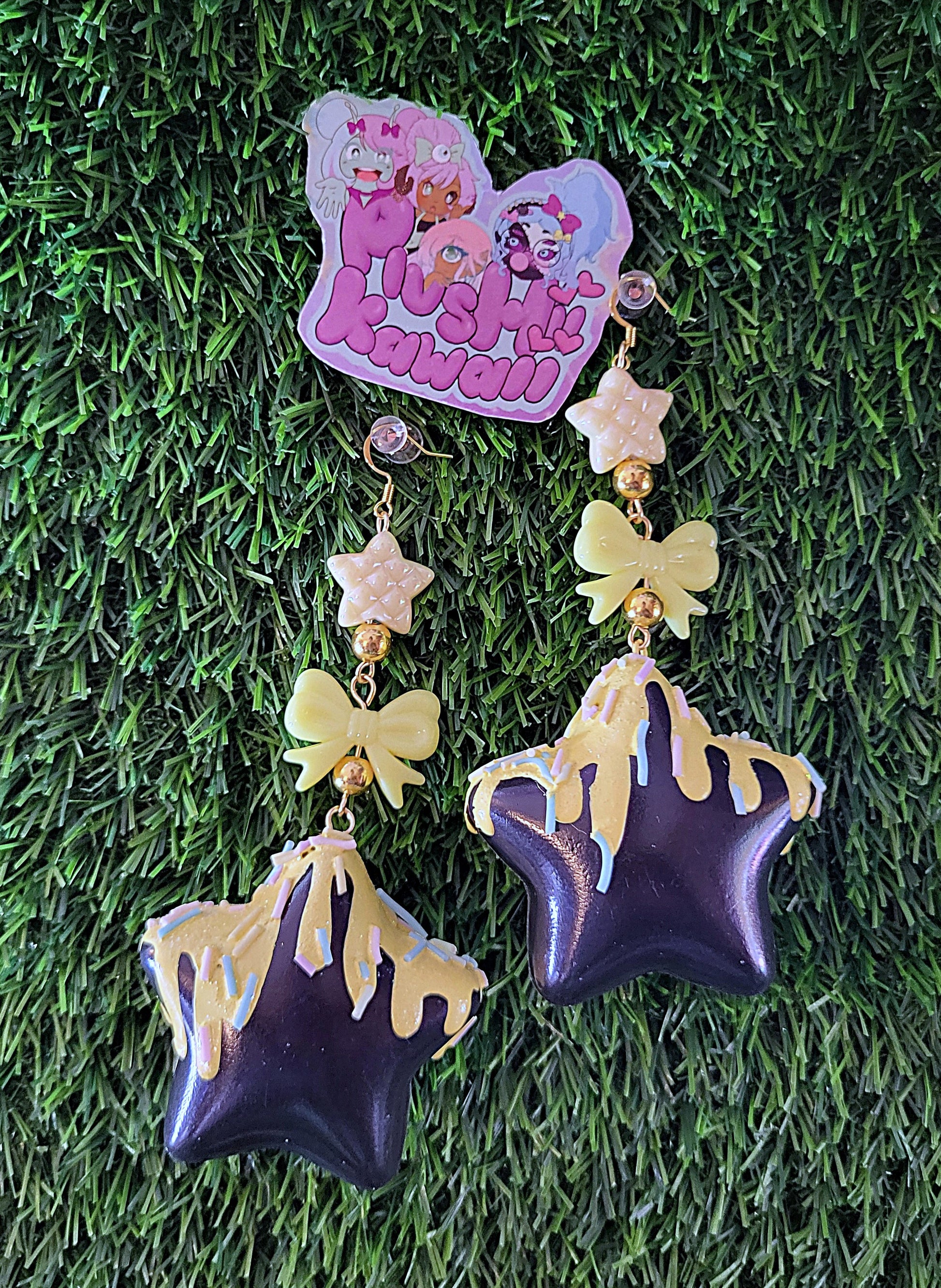 Sweet Puff Star earrings- Black base