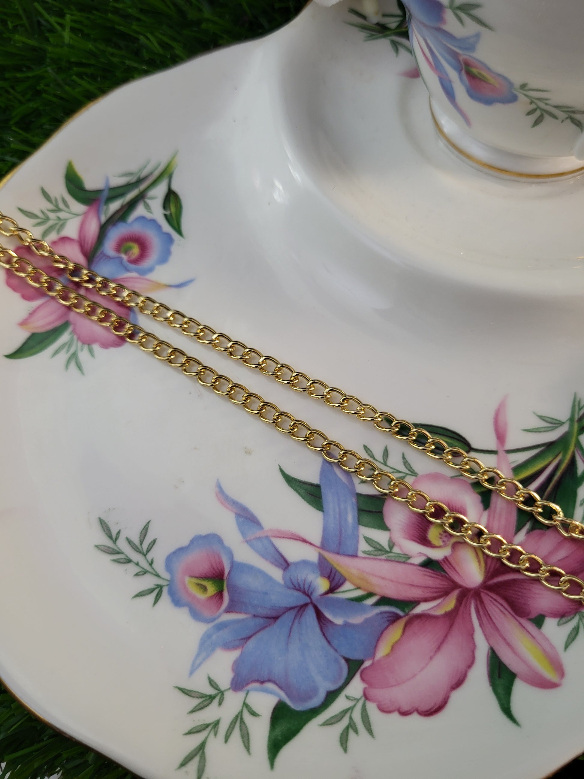 They are finished with a gold tone chain and close with a jumbo lobster clasp for ease.